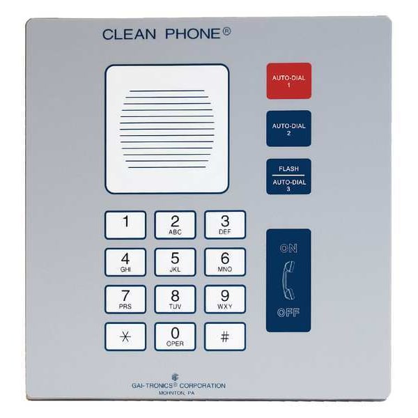 Cleanroom Telephone, Call Waiting No, Overall Depth 2 in, Speakerphone Yes, Overall Height 12 in, Voicemail No, Overall Width 12 in, Volume Control No, Indoor/Outdoor Usage Indoor, Standards CSA Certified, FCC, IC, UL Listed, Number of Handsets 0, Number of Lines 1, Cord Length Not Applicable, Mounting Location Wall, Caller ID No, Enclosure Material Stainless Steel, Enclosure Rating Not Applicable, Includes Enclosure Yes, Facility Type Healthcare, Includes Mounting Hardware No