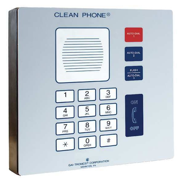 Cleanroom Telephone, Call Waiting No, Overall Depth 2 in, Speakerphone Yes, Overall Height 12 in, Voicemail No, Overall Width 12 in, Volume Control No, Indoor/Outdoor Usage Indoor, Standards CSA Certified, FCC, IC, UL Listed, Number of Handsets 0, Number of Lines 1, Cord Length Not Applicable, Mounting Location Wall, Caller ID No, Enclosure Material Stainless Steel, Enclosure Rating Not Applicable, Includes Enclosure Yes, Facility Type Healthcare, Includes Mounting Hardware No