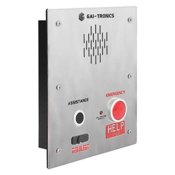 Emergency Telephone, Color Silver, Includes Line Cord, Material Stainless Steel, Mounting Location Surface, Product Type Emergency Call Boxes, Features The Model 396-00X is Considered to be Type 3R Weatherproof Compliant when Installed in a Gai-Tronics Surface Mount Enclosure, Free-Standing Stanchion, Wall Mount Stanchion or Simply Recessed into an Existing Wall, Overall Depth 2 3/8 in, Overall Height 12 in, Overall Width 10 in, Standards FCC, IC, UL/CSA