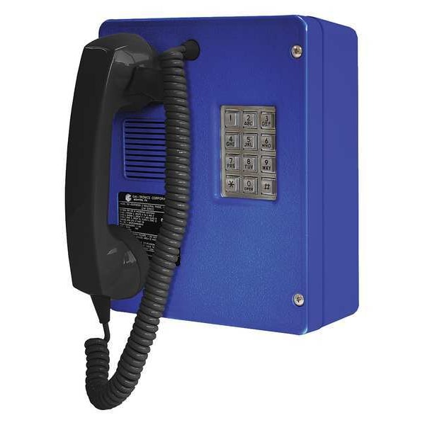 Telephone, Call Waiting No, Overall Depth 6 7/8 in, Speakerphone No, Overall Height 9 1/2 in, Voicemail No, Overall Width 8 in, Volume Control Yes, Indoor/Outdoor Usage Indoor, Standards CSA Certified, IC, UL Listed, Number of Handsets 1, Number of Lines 1, Mounting Location Surface, Caller ID No, Enclosure Material Plastic, Includes Enclosure Yes, Maximum Operating Temperature 140 Degrees F, Minimum Operating Temperature -40 Degrees F, Color Blue, Resistance Properties Vandal Resistant
