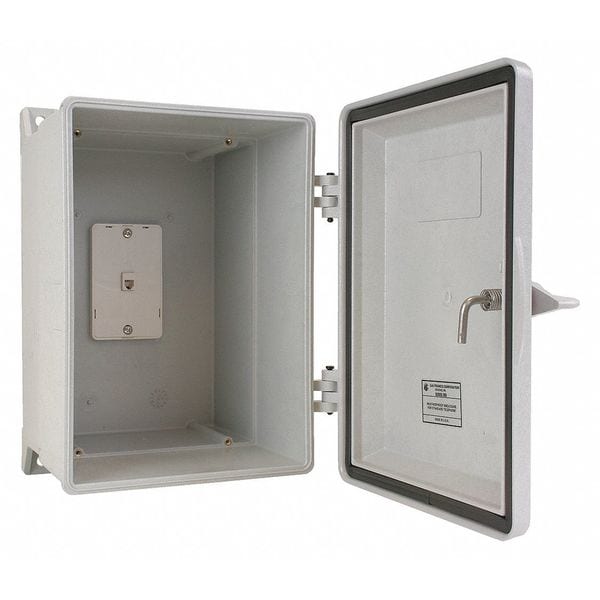 Telephone Enclosure, Color Gray, Enclosure Rating NEMA 4X, Material Plastic, Mounting Location Pole, Surface, Overall Depth 10 1/2 in, Overall Height 14 5/8 in, Overall Width 10 7/8 in, Resistance Properties Corrosion Resistant, Compatible with Series 2500, Features Use Anywhere a Weatherproof Telephone is Needed, For Use With Wall Telephones, Includes Inside Dimensions 7.75 in W X 11.5 in H X 8.0 in D, Mounting Plate, Spring Return Door Option, Includes Mounting Hardware Yes