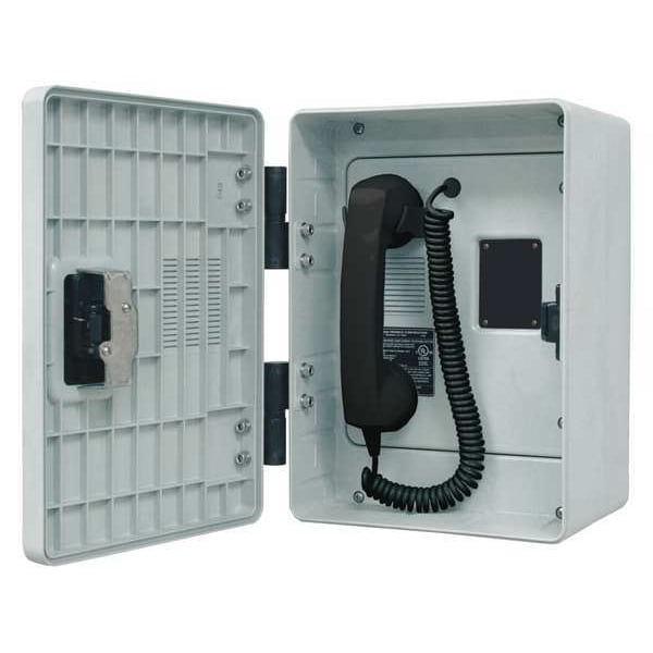 Telephone, Call Waiting No, Overall Depth 7 3/8 in, Speakerphone No, Overall Height 13 1/4 in, Voicemail No, Overall Width 9 3/8 in, Volume Control Yes, Indoor/Outdoor Usage Outdoor, Standards CSA Certified, FCC, IC, UL Listed, Number of Handsets 1, Number of Lines 1, Cord Length 6 ft, Mounting Location Surface, Caller ID -, Enclosure Material Plastic, Enclosure Rating NEMA 3R, Includes Enclosure Yes, Facility Type Commercial, Includes Mounting Hardware No