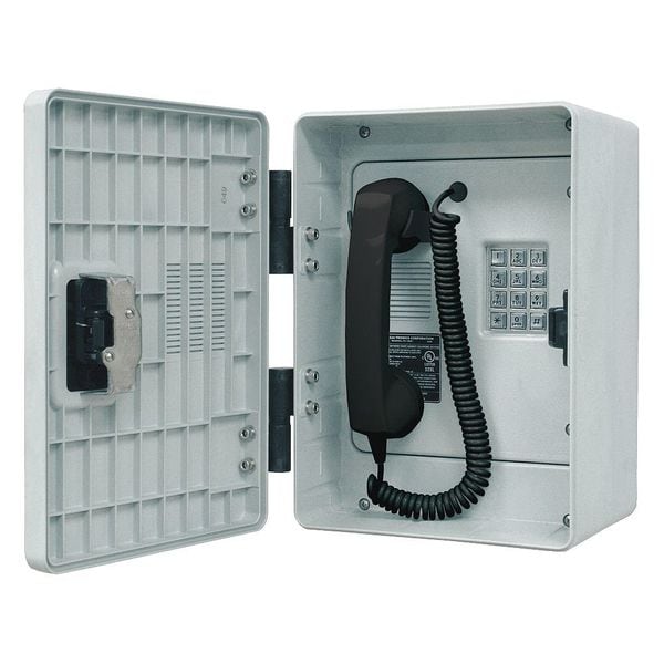 Telephone, Call Waiting No, Overall Depth 7 1/2 in, Speakerphone No, Overall Height 13 1/8 in, Voicemail No, Overall Width 9 3/8 in, Volume Control Yes, Indoor/Outdoor Usage Outdoor, Standards CSA Certified, FCC, IC, UL Listed, Number of Handsets 1, Number of Lines 1, Cord Length 6 ft, Mounting Location Surface, Caller ID No, Enclosure Material Plastic, Enclosure Rating NEMA 3R, Includes Enclosure Yes, Facility Type Commercial, Includes Mounting Hardware No
