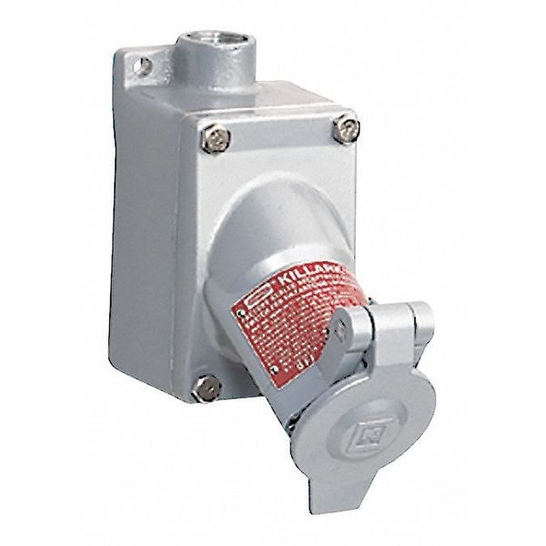 Receptacle, Connection Orientation Straight, Cover Type Flip-Up Cover, Current Rating 20 A, GFCI No, Grounding Grounded, Hazardous Location Specification Class I, Div 1 and 2, Group C, D, Class II, Div 1 and 2, Group F, G, Class III, Div 1 and 2, Housing Color Gray, Housing Material Aluminum, Copper Free, Mount Type Surface, NEMA Enclosure Rating 3, 7CD, 9FG, NEMA Receptacle Configuration 5-20R, Number of Gangs 1, Number of Poles 2, Number of Wires 3, Phase Single, Polarized No
