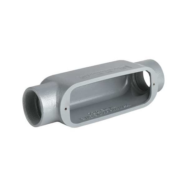Conduit Outlet Body, Overall Width 2 in, Overall Height 2 in, Overall Length 6 in, Trade Size 1/2 in, Compatible Conduit Trade Size 1/2 in, Hub Size 1/2 in, Compatible Cover OL-10, Aluminum, O, Compatible Conduit Type IMC, RMC, Back Type Flat, Body Capacity 4 cu in, Body Style C, Body Type Conduit Outlet Body, Color Gray, Connection Orientation Straight, Connection Type Threaded, Finish Powder Coated, For Use With IMC, RMC, Hazardous Location Yes
