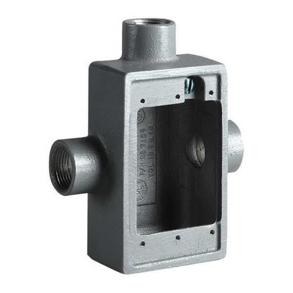 Device Box, Box Type FST, Number of Gangs 1, Bracket Type Lugs, Capacity 18 cu in, Material Aluminum, Clamp Type Not Applicable, Color Gray, Standards CSA, UL Listed