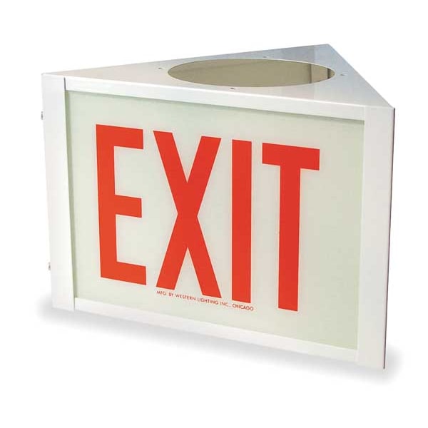 Ext Sgn,Wht,9 1/4in,4W, Letter Color Red, Number of Faces 3, Housing Color - Emergency Lighting and Exit Signs White, Height 13 25/32 in, Width 9 1/4 in, Exit Sign