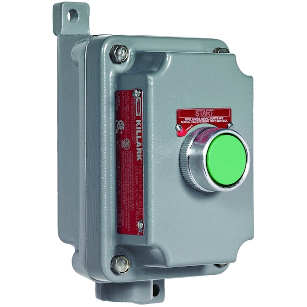 PB Statn,Sgl,Assy Mom,Gn,1No/1Nc,1/2 In. DE