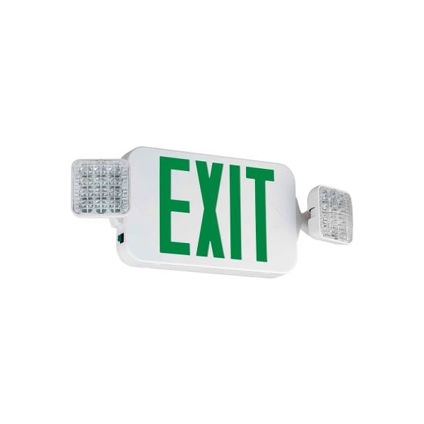 Compass lighting ccghosq led combo light, square heads, white w/ green leds, nicad batt, high output led combo exit/emergency unit, universal single or double-face, square adjustable lamp heads, long-life nicad battery, canopy included, quick installation