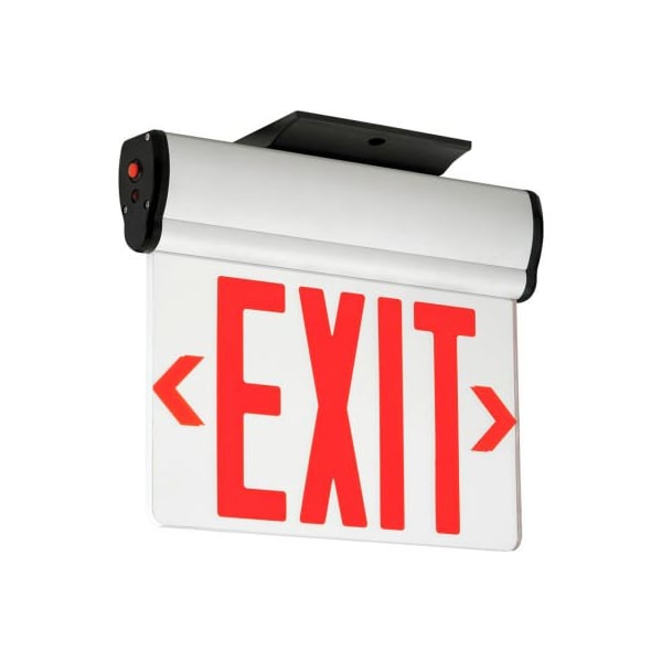 Hubbell cels2rne led edge-lit exit, double-face, red letters, surface mount, w/battery back-up superior panel illumination w/ red letters, led life-cycle of more than 10 years, 120/277v input, includes long-life nickel cadmium battery for 90 minute emergency lighting, field installed directional arrow indicators with temlatek mirror divider, provided w/ test switch & ac-on indicator, surface mount with clam-shell design for easy installation & access to internal circuitry, canopy included