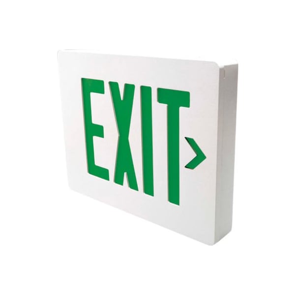Hubbell SESGW Die Cast Aluminum LED Exit Sign, White w/ Green Letters, Single Face, Damp Location