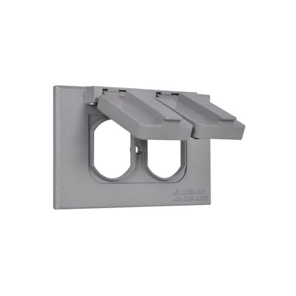 Master Electrician, Gray, Weatherproof, Horizontal, Single Gang Flip Cover, Hanging Version Of TV 666073