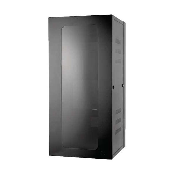 Cabinet, Product Type Rack Enclosure, Color Black, Finish Powder Coated, Material Steel, Mounting Location Wall, Overall Height 48 in, Overall Width 26 7/8 in, Overall Depth 20 in, Overall Load Capacity 410 lb, Rack Units 26, Includes Locking Door with Acrylic Sheet Window, Includes Mounting Hardware Yes, Standards EIA/ECA-310-E