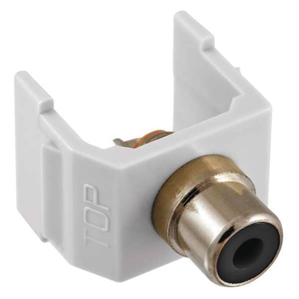Keystone Jack, Termination Type Solder, Compatible Connector Type RCA, Color White, Compatible Number of Fibers Not Applicable, Compatible Wire Material Not Applicable, RCA Insulator Color Black, Number of Ports 1, Overall Height 13/16 in, Standards RoHS Compliant