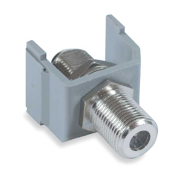 Keystone Jack, Termination Type Coupler, Compatible Connector Type F-Type, Color Gray, Compatible Number of Fibers Not Applicable, Compatible Wire Material Not Applicable, RCA Insulator Color Gray, Number of Ports 1, Overall Depth 1 1/8 in, Overall Height 3/4 in, Overall Width 7/8 in, Standards RoHS Compliant