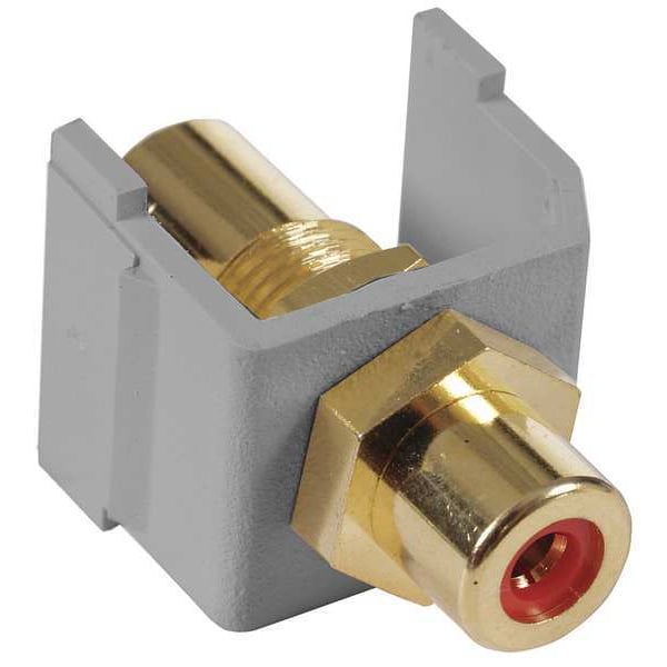 Keystone Jack, Termination Type Coupler, Compatible Connector Type RCA, Color Gray, Compatible Number of Fibers Not Applicable, Compatible Wire Material Not Applicable, RCA Insulator Color Red, Number of Ports 1, Overall Height 13/16 in, Standards RoHS Compliant