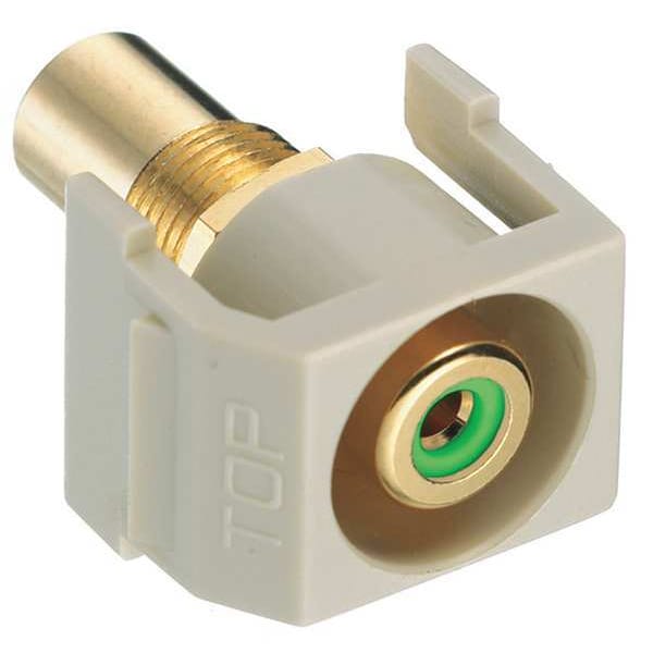 Keystone Jack, Termination Type Coupler, Compatible Connector Type RCA, Color Ivory, Compatible Number of Fibers Not Applicable, Compatible Wire Material Not Applicable, RCA Insulator Color Green, Number of Ports 1, Overall Height 7/8 in, Standards RoHS Compliant