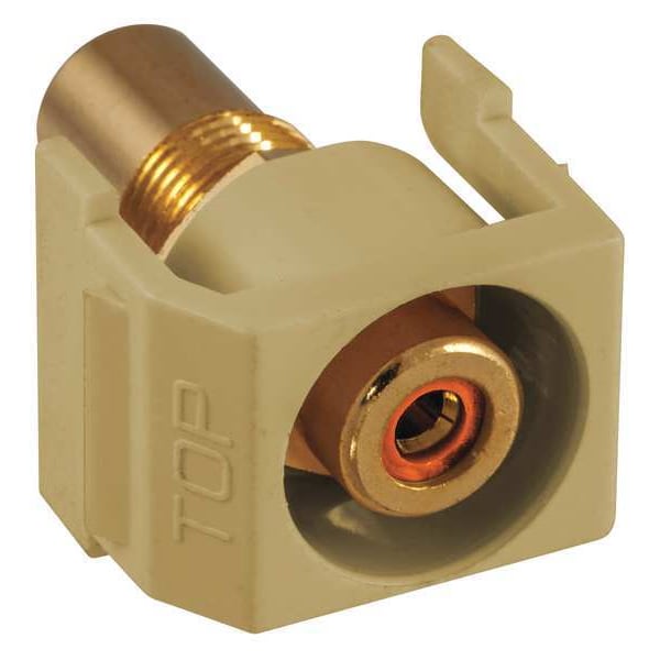 Keystone Jack, Termination Type Coupler, Compatible Connector Type RCA, Color Ivory, Compatible Number of Fibers Not Applicable, Compatible Wire Material Not Applicable, RCA Insulator Color Orange, Number of Ports 1, Overall Height 7/8 in, Standards RoHS Compliant