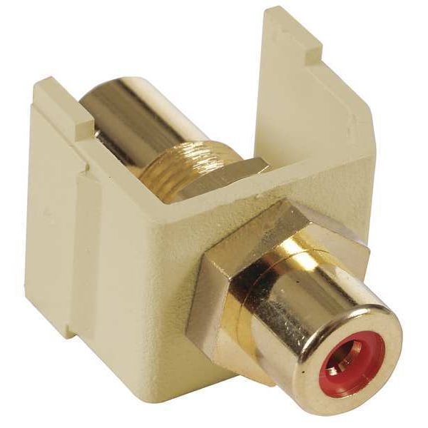 Keystone Jack, Termination Type Coupler, Compatible Connector Type RCA, Color Ivory, Compatible Number of Fibers Not Applicable, Compatible Wire Material Not Applicable, RCA Insulator Color Red, Number of Ports 1, Overall Height 13/16 in, Standards RoHS Compliant