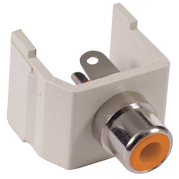 Keystone Jack, Termination Type Solder, Compatible Connector Type RCA, Color Off-White, Compatible Number of Fibers Not Applicable, Compatible Wire Material Not Applicable, RCA Insulator Color Orange, Number of Ports 1, Overall Height 13/16 in, Standards RoHS Compliant
