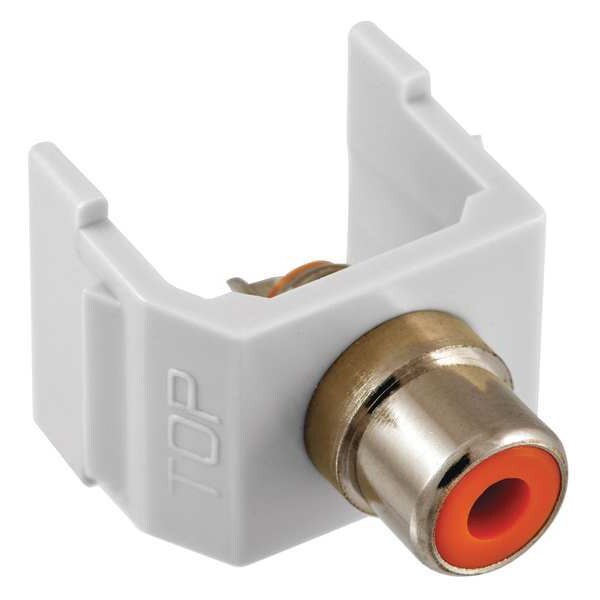 Keystone Jack, Termination Type Solder, Compatible Connector Type RCA, Color White, Compatible Number of Fibers Not Applicable, Compatible Wire Material Not Applicable, RCA Insulator Color Orange, Number of Ports 1, Overall Height 13/16 in, Standards RoHS Compliant