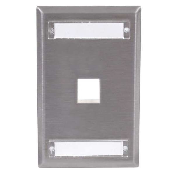 Wall Plate, Product Type Wall Plate, Wallplate Type Audio/Video, Color Gray, Compatible Connector Type Keystone Jack Modules, Number of Gangs 1, Outlet Orientation Vertical, Number of Ports 1, Compatible Cable Performance Category Not Applicable, Material Stainless Steel, Features Stamped Construction, Includes (2) Clear Label Covers, (2) Labels, Includes Mounting Hardware Yes, Overall Depth 1/4 in, Overall Height 4 1/2 in, Overall Width 2 3/4 in