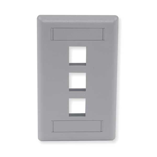 Wall Plate, Product Type Wall Plate, Wallplate Type Audio/Video, Color Gray, Compatible Connector Type Keystone Jack Modules, Number of Gangs 1, Outlet Orientation Vertical, Number of Ports 3, Compatible Cable Performance Category Not Applicable, Material Plastic, Includes Mounting Hardware Yes, Overall Depth 3/8 in, Overall Width 2 3/4 in, Standards cUL Listed 1863, UL Listed 1863