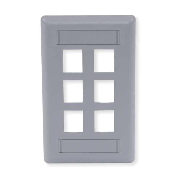 Wall Plate, Product Type Wall Plate, Wallplate Type Audio/Video, Color Gray, Compatible Connector Type Keystone Jack Modules, Number of Gangs 1, Outlet Orientation Vertical, Number of Ports 6, Compatible Cable Performance Category Not Applicable, Material Plastic, Includes Mounting Hardware Yes, Overall Depth 3/8 in, Overall Width 2 3/4 in, Standards cUL Listed 1863, UL Listed 1863
