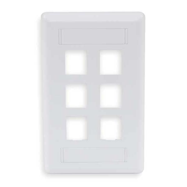 Wall Plate, Product Type Wall Plate, Wallplate Type Audio/Video, Color Office White, Compatible Connector Type Keystone Jack Modules, Number of Gangs 1, Outlet Orientation Vertical, Number of Ports 6, Compatible Cable Performance Category Not Applicable, Material Plastic, Includes Mounting Hardware Yes, Overall Width 2 3/4 in, Standards cUL Listed 1863, UL Listed 1863