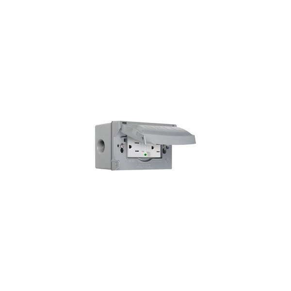 BOX/FLIP COVER 1G WP GFCI GRY Specifications: Application: For use whenever weatherproof protection is required for an outdoor receptacle Includes: Gasket Mounting Hardware Box Cover Switch For use in wet, damp or dry locations. Kit is a complete weatherproof installation, includes weatherproof box, cover, GFCI receptacle and multi-lingual instructions. UL listed. cUL compliant.