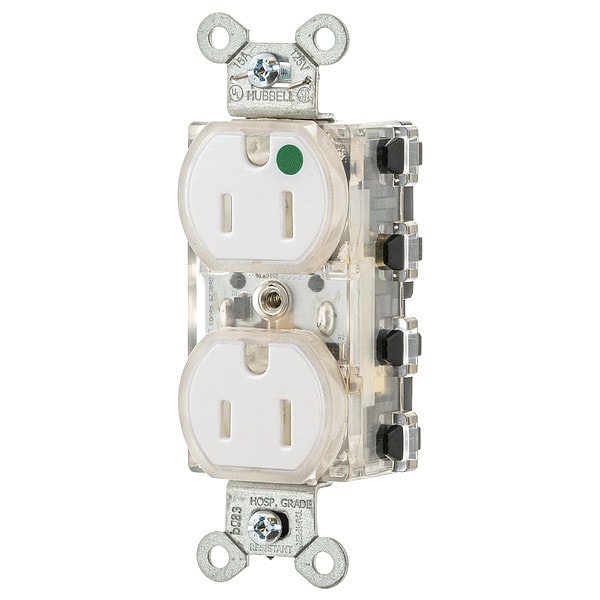 Straight Blade Receptacle, 5-15R, 15 A, 125V AC, 2 Pole, 3 Wire, Flush Mount, Grounded