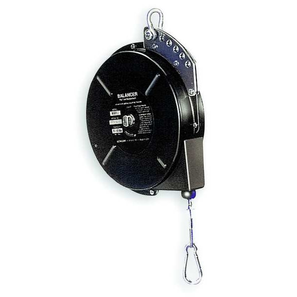 The HUBBELL Tool Balancer is rated for use with tools weighing between 16 and 23 lb; provides suspension for tool positioning in workplace environments. Constructed with a steel housing and galvanized steel cable, this tool balancer features a ratchet locking mechanism that allows the user to secure the position of suspended tools as needed. The unit mounts via a reinforced hanging bracket with forged clevis for ceiling installation.