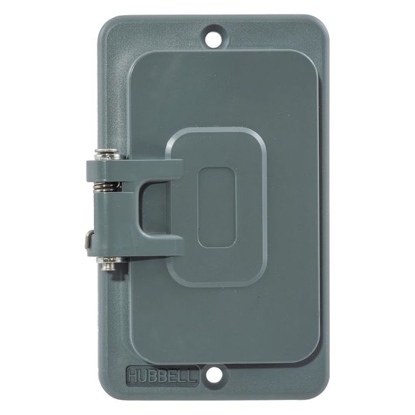 Watertight Cover, For Use With GFCI Receptacle, Mounting Orientation Vertical, Lid Style Self Closing, Number of Gangs 1, Material Thermoplastic Elastomer, Gasket Material Neoprene, Color Gray, Height 3-51/64 In., Width 2-13/64 In., NEMA Rating 3R, Standards UL and CSA
