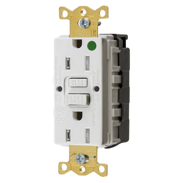Hubbell Wiring Device Kellems, Straight Blade Devices, SnapConnectReceptacle, GFCI, Tamper and Weather Resistant, Commercial HospitalGrade, Self Test, 15A 125V, 2-Pole 3-Wire Grounding, 5-15R, White