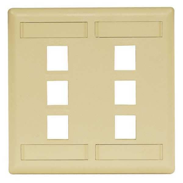 Face Plate, Color Ivory, Number of Gangs 2, Number of Ports 6, Material Plastic, Overall Depth 3/8 in, Overall Height 4 1/2 in, Overall Width 4 1/2 in