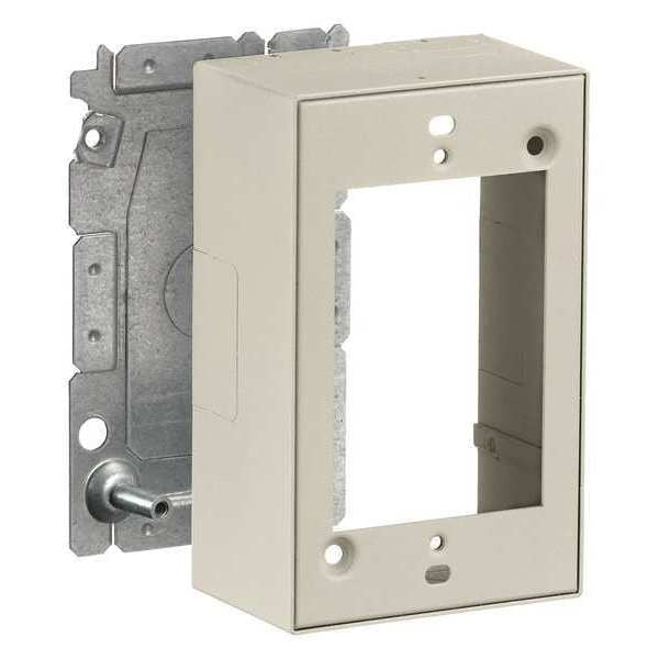 Back Box Feed, Series 2000, Material of Construction Steel, Number of Channels 1, Color Ivory, Height (In.) 4 1/2 in, Length (In.) 2 7/8 in, Width (In.) 2 7/8 in, For Use With For Deep Switches and Receptacles, HBL2000, Features Base Has One 1/2 in trade size KO and rectangular KO for extension to wall box, Standards CSA, UL 5, UL E253830, UL E253833, UL E253976, Backing Non-Adhesive, Number of Gangs 1, Overall Depth 1 3/4 in