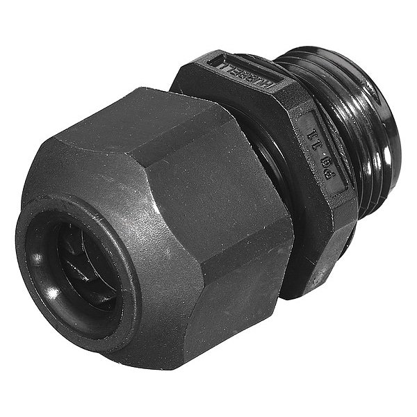 Liquid Tight Cord Connector, Cord Dia. Range 0.23 in to 0.40 in, Box Connection PG11, Male, Material - Cord Connector Nylon, External Strain Relief Material No External Strain Relief, Gland Color Code No Code, Body Color - Cord Connector Black, Number of Cords 1, Style - Connector Straight, Strain Relief Type No External Strain Relief, External Strain Relief Length No External Strain Relief, Length - Box to End of Connector 1 1/2 in, Insulated Yes, Standards CSA C22.2 No. 18, UL 514B, VDE