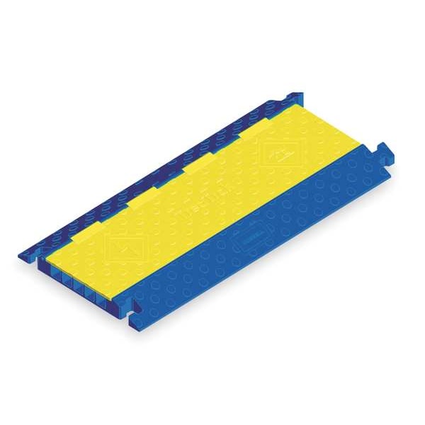 Modular Cable Protection System, Number of Channels 5, Channel Height 1 1/4 in, Channel Width 1 1/4 in, Load Capacity 18,400 lb/Axle @ 120 Degrees F, 20,150 lb/Tire @ 70 Degrees F, 40,300 lb/Axle @ 70 Degrees F, 9,200 lb/Tire @ 120 Degrees F, Color Blue/Yellow, Max. Cable Dia. 1 1/4 in, Height 2 3/8 in, Length 36 in, Width 20 in, ADA Compliant No