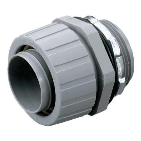 Liquid-Tight Conduit Fitting, Insulated Yes, Trade Size 1 1/2 in, Compatible Conduit Type Flexible Liquid Tight Non-Metallic Conduit, Box Connection 1 1/2 in MNPT, Nylon, Color Gray, For Use With Flexible Liquid Tight Non-Metallic Conduit, Connection Orientation Straight, Mesh Material No Strain Relief Mesh, Hazardous Location Rating Not Rated, Compatible Knockout Trade Size 1 1/2 in, Connection Type Threaded, Connector Style Straight, External Grounding Lug No