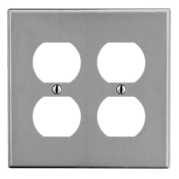 Duplex Receptacle Wall Plate, Number of Gangs: 2 Plastic, Satin Finish, Graphite