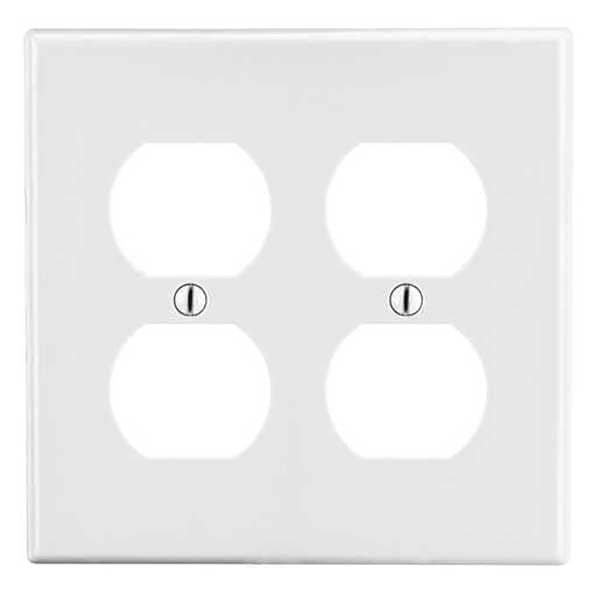 Duplex Receptacle Wall Plate, Number of Gangs: 2 Plastic, Satin Finish, White