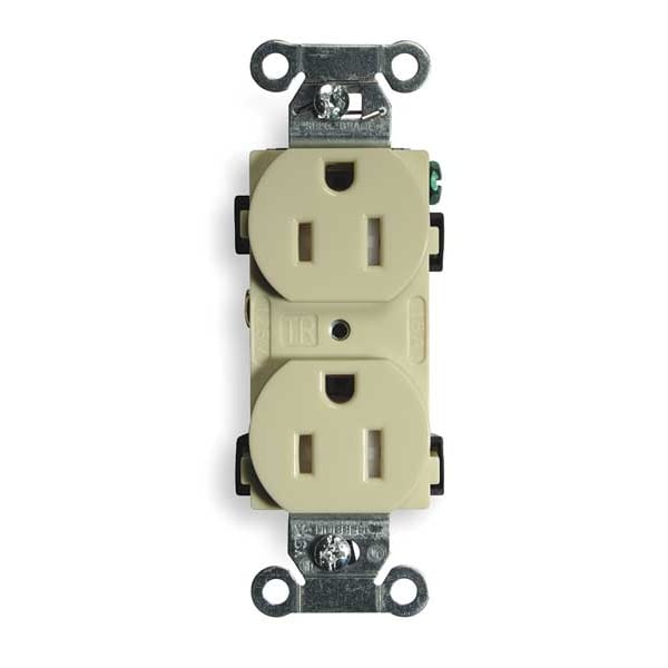 Duplex Straight Blade Receptacle, 5-15R, 15 A, 125V AC, 2 Pole, 3 Wire, Flush Mount, Grounded