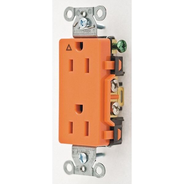 The HUBBELL Decorator Duplex Receptacle is a 15 amp, 125V AC flush mount outlet suitable for use in commercial settings. This isolated ground receptacle features an insulation barrier that separates ground contacts from the mounting strap and conventional grounding system; compatible with dedicated insulated ground wiring. The device supports back and side wired screw terminals for flexible installation.