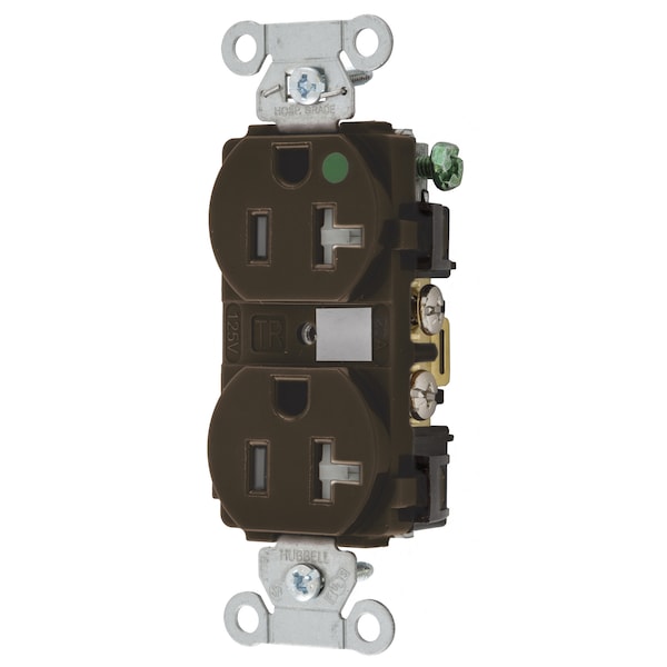 Hubbell Wiring Device Kellems, Straight Blade Devices, Tamper ResistantDuplex Receptacle, Hospital Grade, Hubbell-Pro, 20A 125V, 2-Pole 3-WireGrounding, 5-20R, Brown
