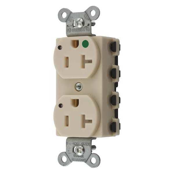 The HUBBELL SNAPConnect® Hospital Grade Duplex Receptacle is a 20 amp, 125V AC flush mount outlet suitable for use in commercial and hospital settings. This standard duplex receptacle features modular wiring with a connectorized design, allowing the terminal to be snapped into place after rough-in installation. The device includes tamper-resistant shutters and an LED indicator, and is suitable for indoor use in dry locations.