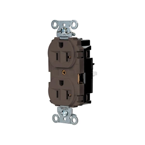 Duplex Straight Blade Receptacle, 5-20R, 20 A, 125V AC, 2 Pole, 3 Wire, Surface Mount, Grounded