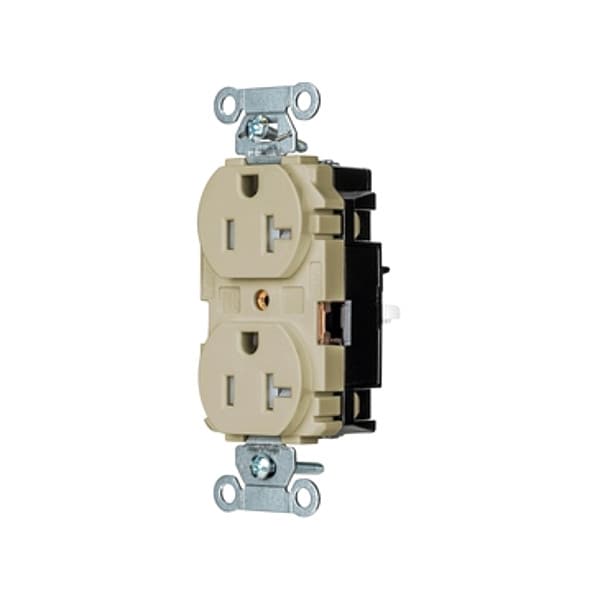 Duplex Straight Blade Receptacle, 5-20R, 20 A, 125V AC, 2 Pole, 3 Wire, Surface Mount, Grounded