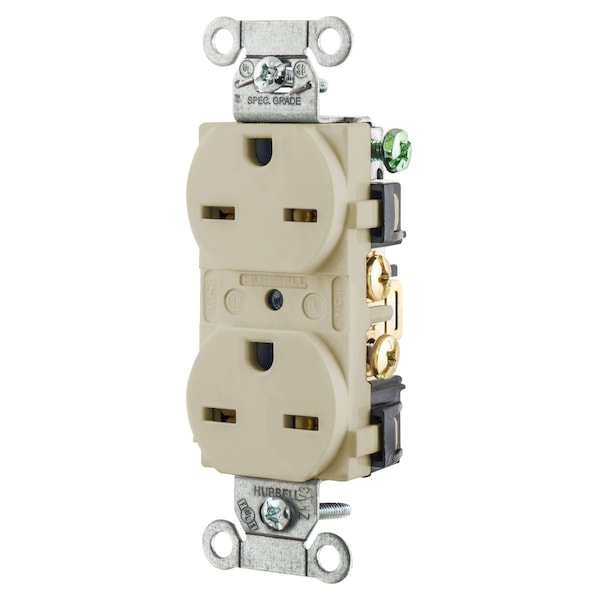 Hubbell Wiring Devices, Straight Blade, Duplex Receptacle, Hubbell-PRO,Finder Groove Face, 15A 250V, 2-Pole 3-Wire Grounding, 6-15R, Ivory