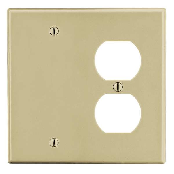 Duplex/Blank Wall Plate, Number of Gangs: 2 Plastic, Satin Finish, Ivory