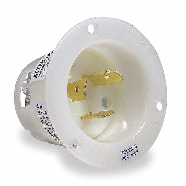 Flanged Locking Inlet, 20 A, 250V AC, Single Phase, 2 Pole, Flush Mount, Screw Terminals, White